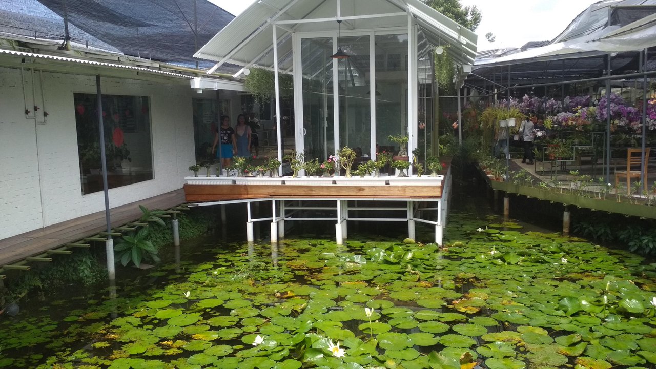 由於養殖場是溫室處理而且不容許拍照,所以只好出來外面拍了。地上擺置的盆栽形成了一條美麗的橋。