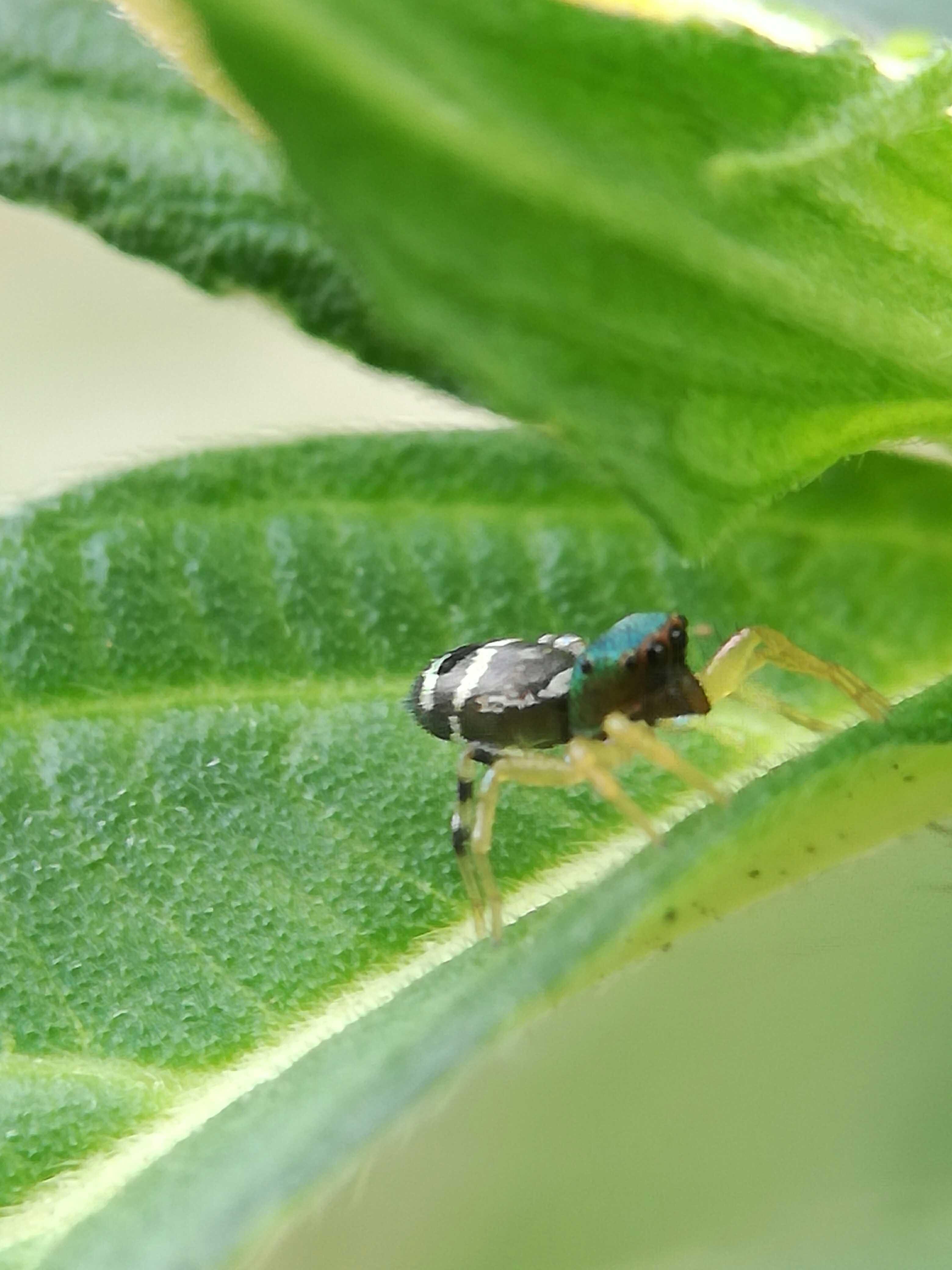 This afternoon I am accompanied by a beautiful little little profit. Body color is dark green. The spider got into my list of photography hunts today after a long absence photographing.