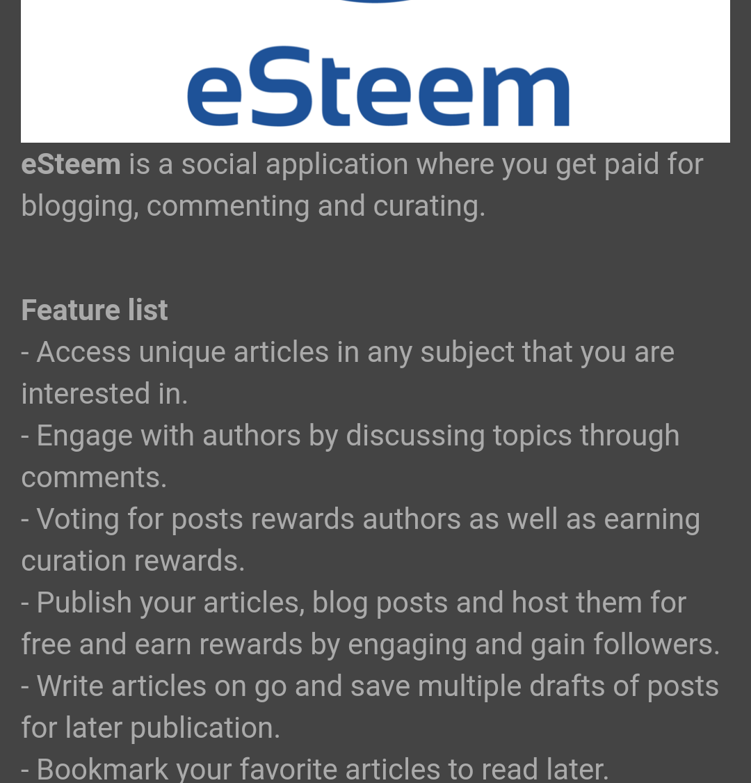 It gives you the the reason why eSteem is created and also to the platform of Steemitm