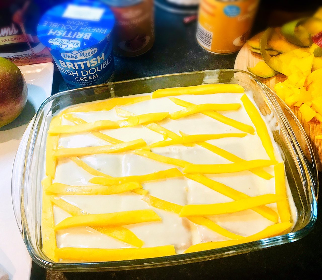 5.Top with mango slices. - Repeat the procedure for the second layer.