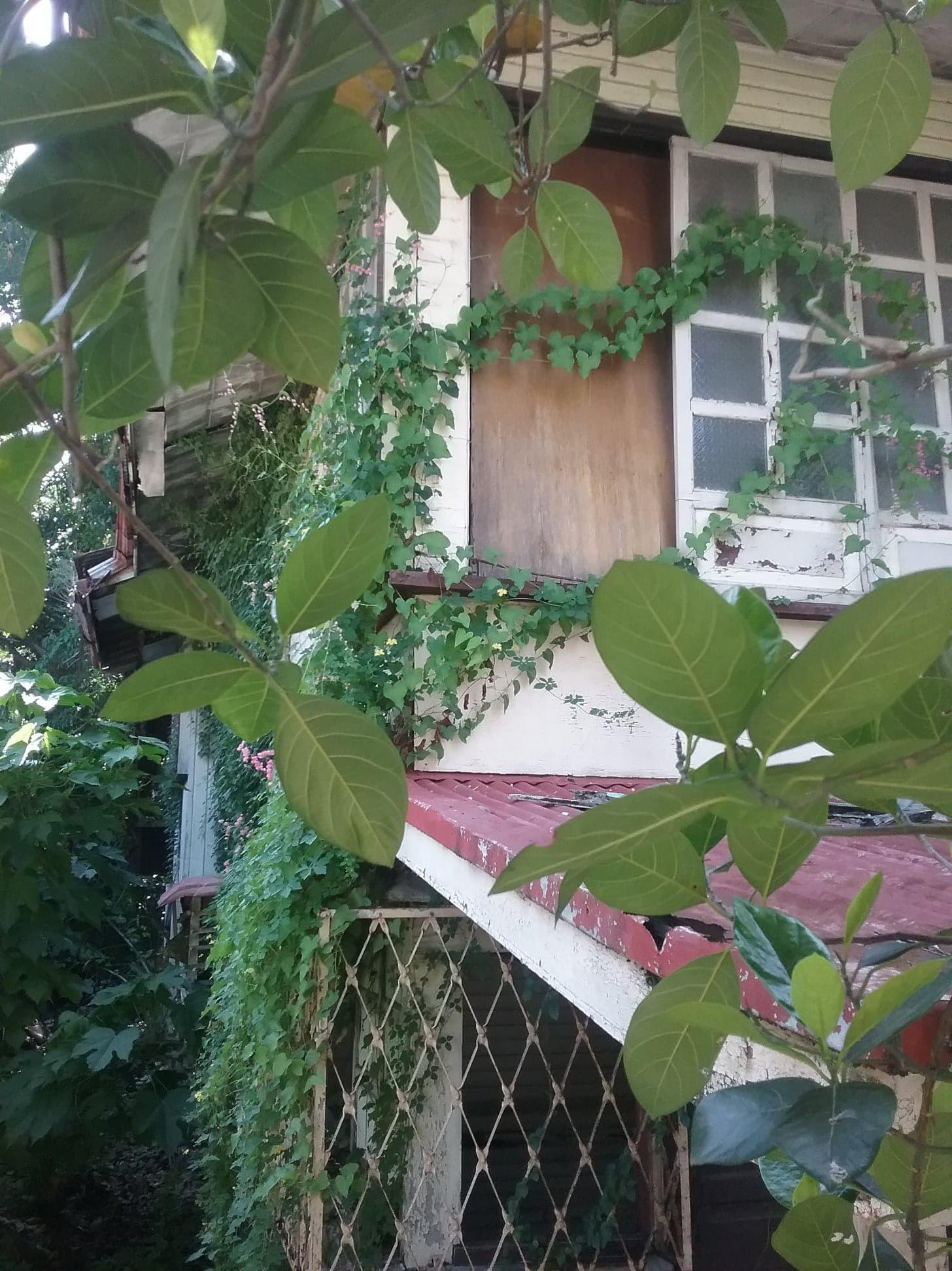This is what I see the windows in front and back are closed but vines are slowly covering them like the middle window. The cement area is the roof over my garage lol.
