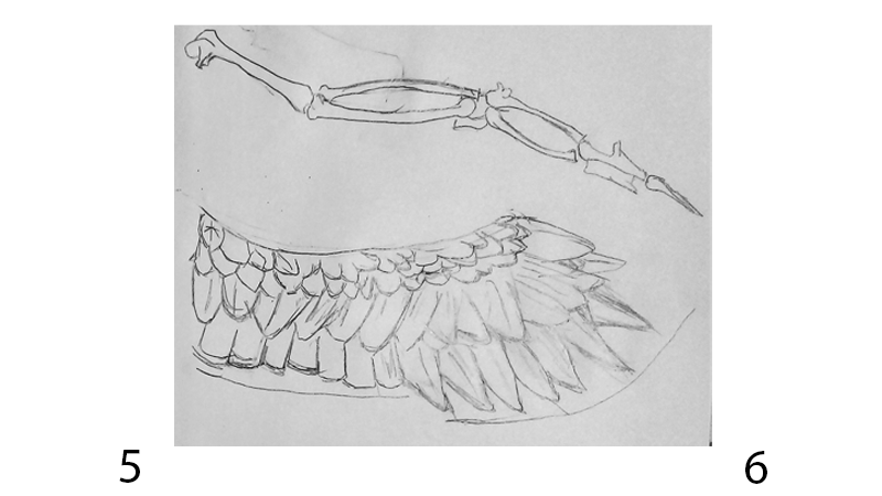 (5) The generic structure of the wings. Illustration. (6) With feathers.
