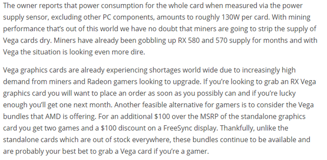 AMD RX Vega 64 Eclipses Polaris In Ethereum Mining Efficiency By 2X – Achieves 43.5MH/s At 130Werki (51)in #eth • 8 years ago Don't forget to Upvote and Follow me. #miners #crypto #btc #pc