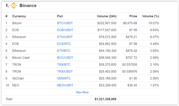 As of today , the Crypto Exchange by daily dollar volume is LED By Binance, Followed By