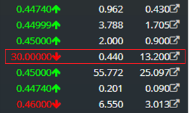 - The orders in GREEN are BUY orders, you click a GREEN order to SELL to that BUYER at his price.