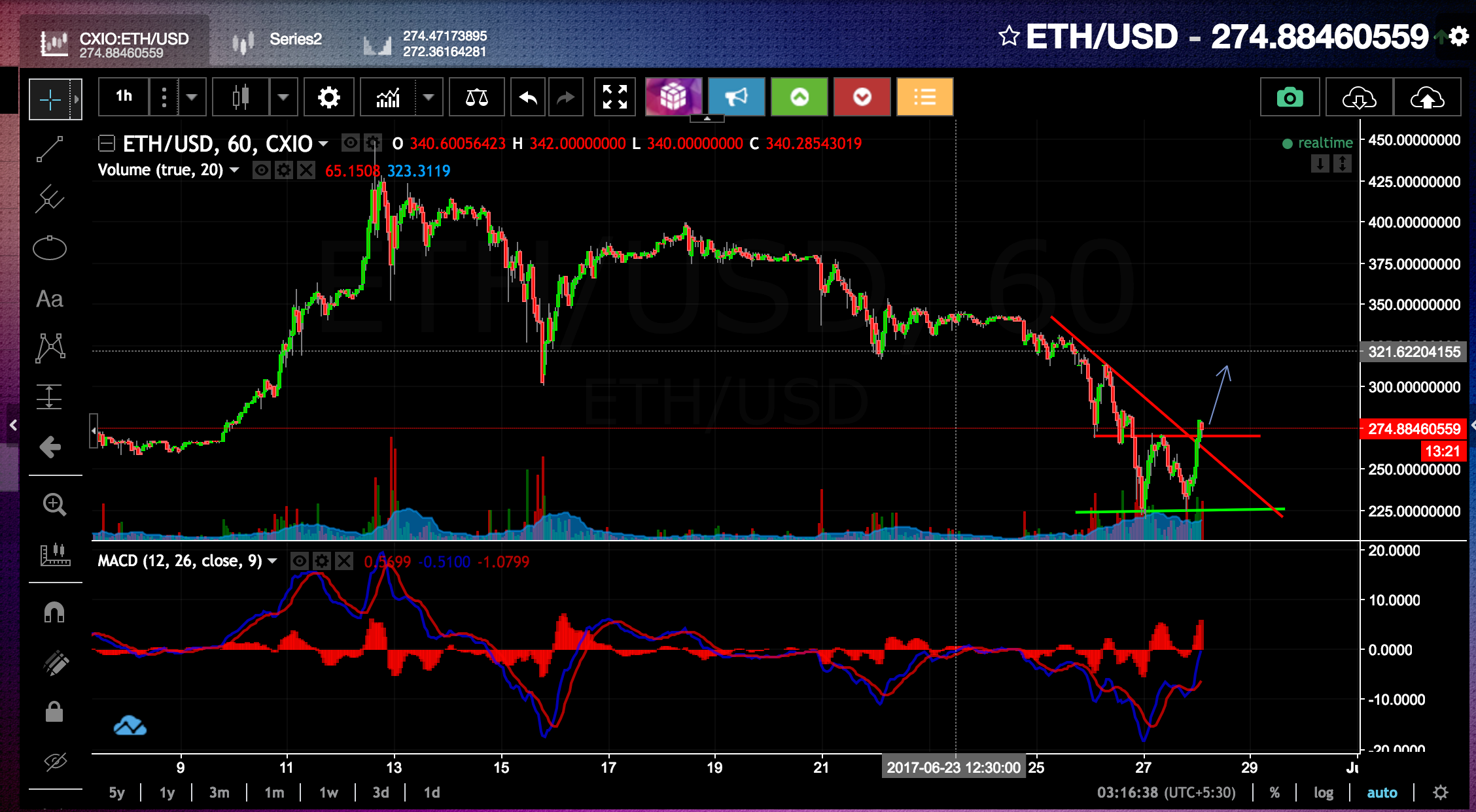 So, IMO this could be the probable reversal of the trend, RSI level is above 50 but on hourly chart MACD is still in bearish zone, Once MACD goes in bullish zone, this will confirm the trend reversal.