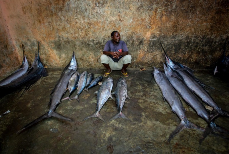 Selling fish inside Mogadishu’s fish market in the Xamar Weyne district of the Somali capital⁴