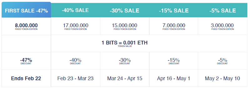 They are purchasing Bitcoinus tokens (BITS) at the rate of 1 BITS per 0.001 ETH which will be sent to their ETH supported wallet.*
