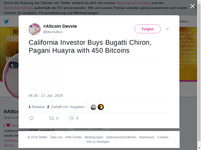 California Investor Buys Bugatti Chiron, Pagani Huayra with 450 Bitcoins • r/Bitcoin