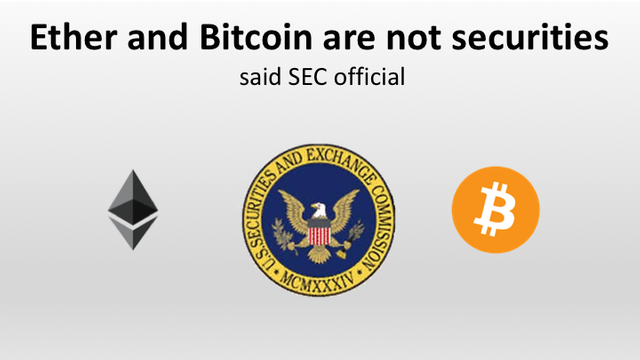 Ether and Bitcoin are not securities said SEC official