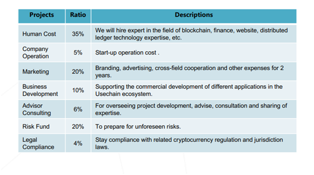 The funds raised will be used in the following aspect to support the operation of Usechain.