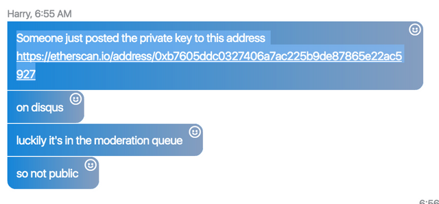 Phew! We all know that you should NEVER post private keys online so it was some relief to see that we who were, we hope, trustworthy would be the only people to see it except….