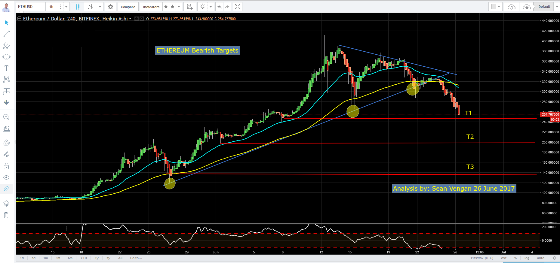 ETHEREUM SELL - Ethereum troubles provides us with a trade - current price $269.25, 1 July 2017 @supertrader