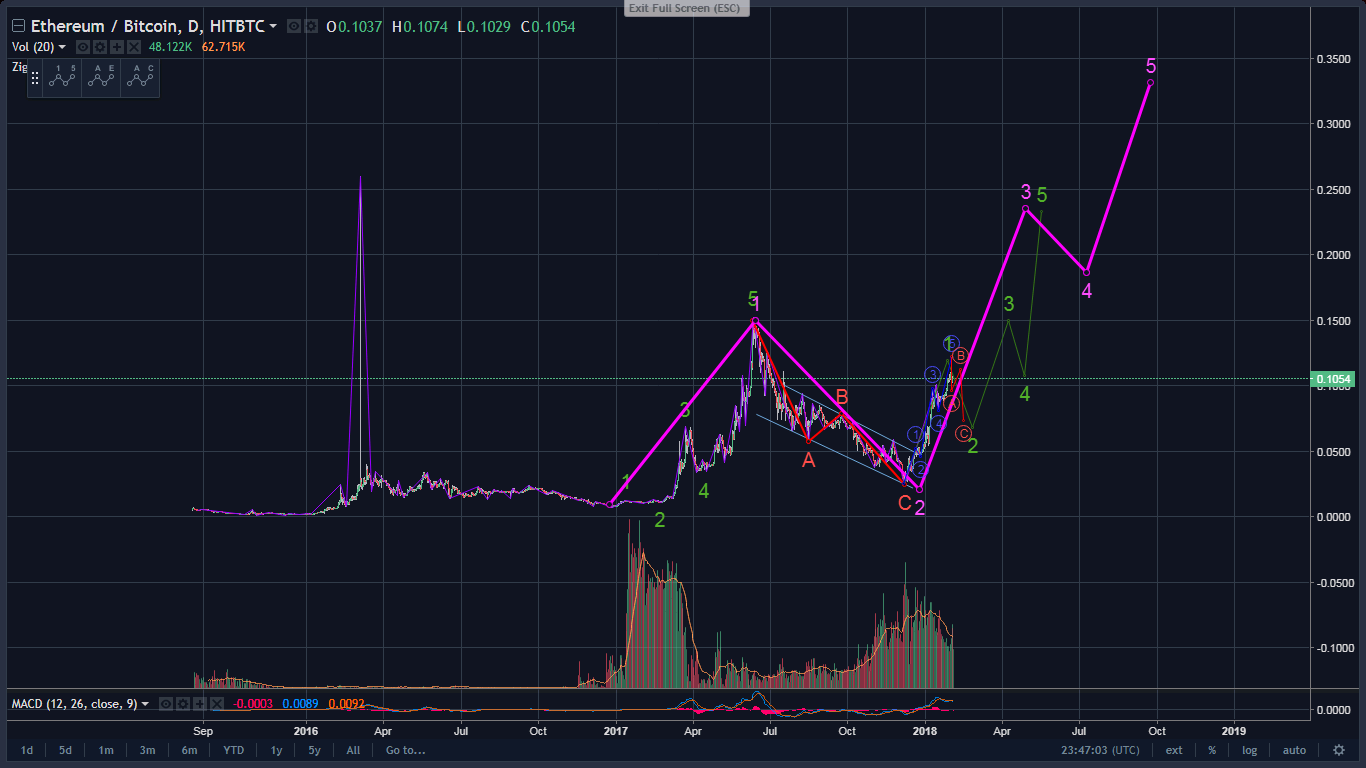 The big picture show great profits could be found with Ethereum in 2018 IF the pink elliot wave fulfills.