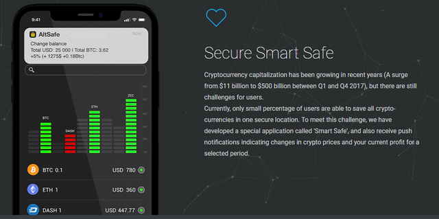 The ALTX safe is very secure which allows the user to save their crypto currencies. It provides the users with multi wallet. One user can own several wallets at a time. There are two type of digital wallets, the online one is known as HOT wallet and the offline one is known as COLD wallet. Both have few advantages and disadvantages. So the ALTTEX came up with the unique wallet having the properties of both cold and hot wallet and is termed as WARM WALLET. Users can keep certain amount of money as cold and other as hot. He can keep the cold money untouched and safe while can do transactions and dealing with the money kept as hot. He can also transfer the money or tokens from one wallet to other anytime he wants. The safe is protected by a private passcode.