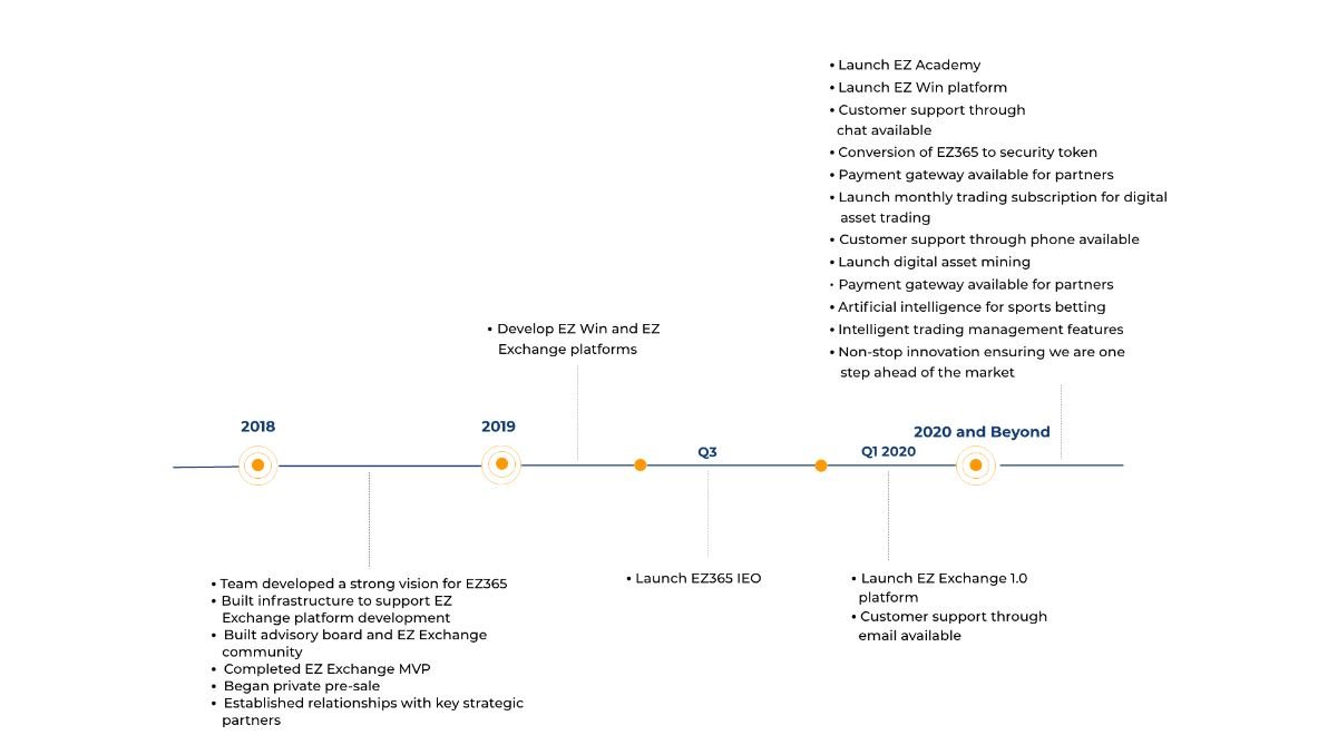 The Ez365 platform details it's project vision, mission and objectives in a timeline for users to follow through as a blueprint. Find below the Ez365 roadmap for users.