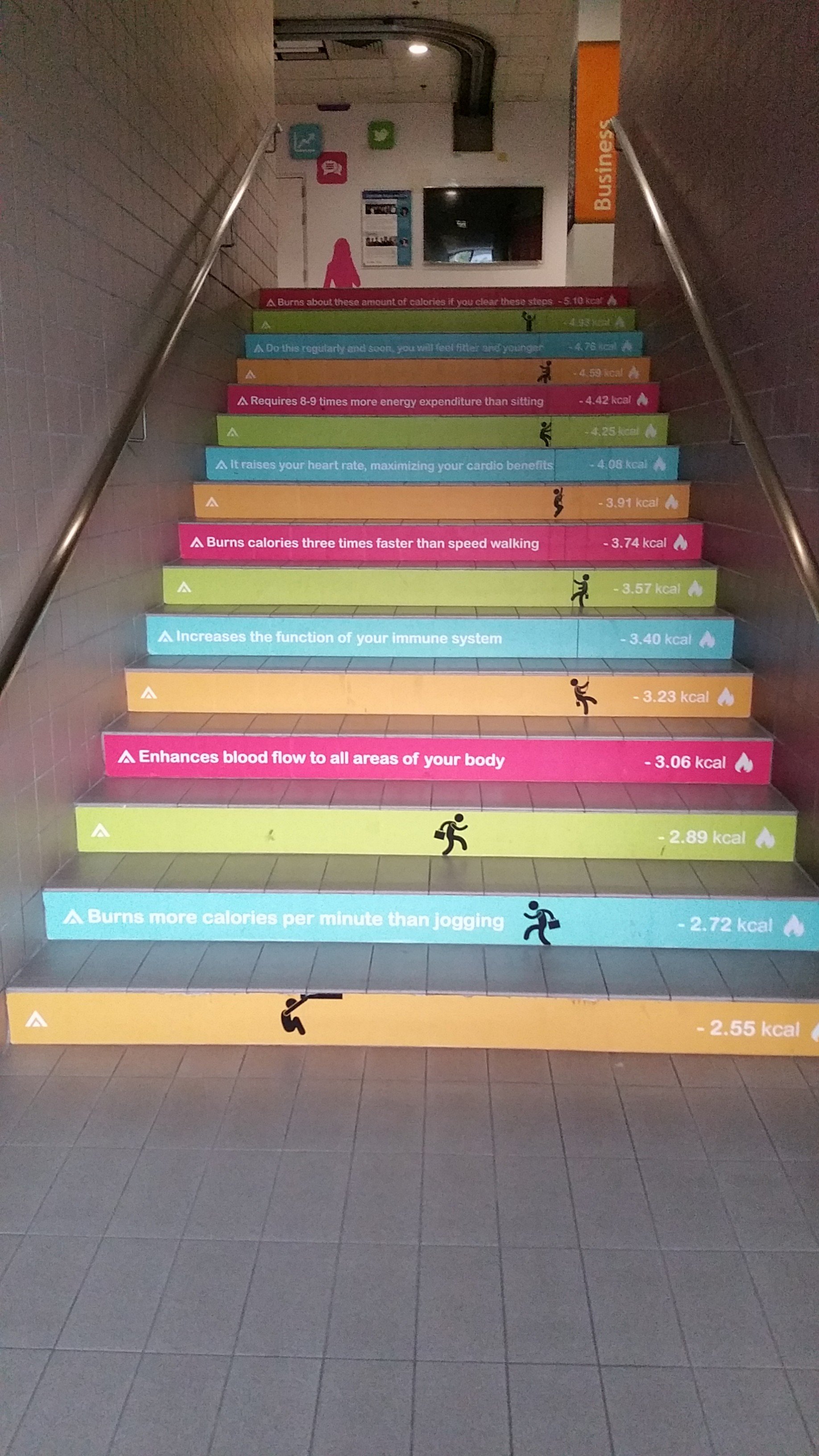 I was at Nanyang Polytechnic yesterday evening attending a talk. Adjacent to the lecture theatre, there is this flight of stairs which caught my eyes; an ordinary flight of stairs there has been there for years but it was the colours that caught my attention. A closer look and you’ll see the story: