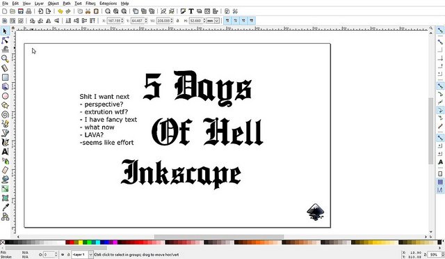 To get started Inkscape is super simple. You don't need to be concerned with layers or anything silly like when you are in GIMP or Photoshop. That is why I will always do layouts in CorelDraw, literally, anything that will require some structure like collages, positioning, heck any content layout I will prefer to do in CorelDraw because of this. I can just click shit and make new objects, move around at will and I won't have to think about which layer I am on. It is just quicker.