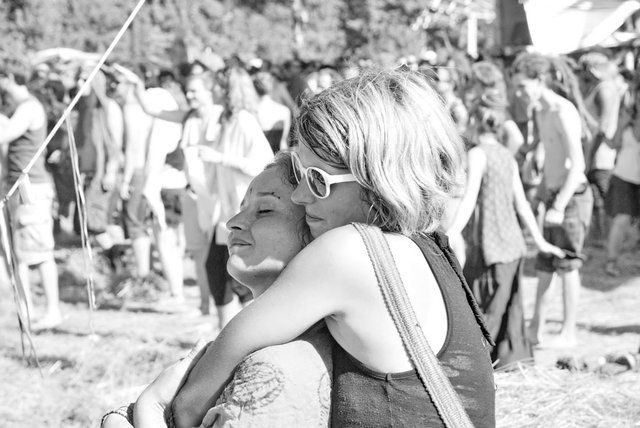 I was a wreck, feeling the intensity of what probably should happen vs. my BS narratives how it would be weird to walk over there and start a conversation now about how I had adored her stomping the whole morning. After that brief moment of utter synchronous cosmic happening when our eyes met "randomly" she went back dancing and I decided to do the same, doing my best not to look for her but to let go of it if it was indeed such a freakin' problem to just say hi to her to release some pressure. Jeez dude, there are thousands of people here, why do you think you can not interact with this one human being?!