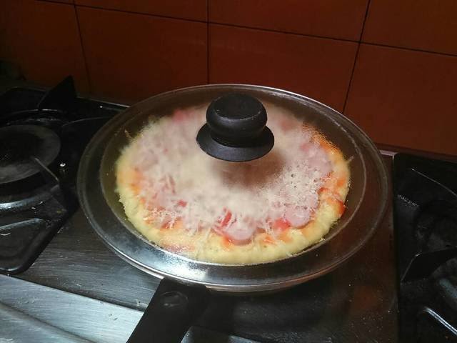 tips: I wear furnace stove in the middle (most small flame). I use the first 5 minutes of a fire and the dough is not my cap, to provide maximum heat and develop doughnya dough. Afterwards I reduce the heat and my griddle covered, for 10-15 minutes so that we get a pizza that color is gorgeous and cooked evenly in it, do not burn underneath .