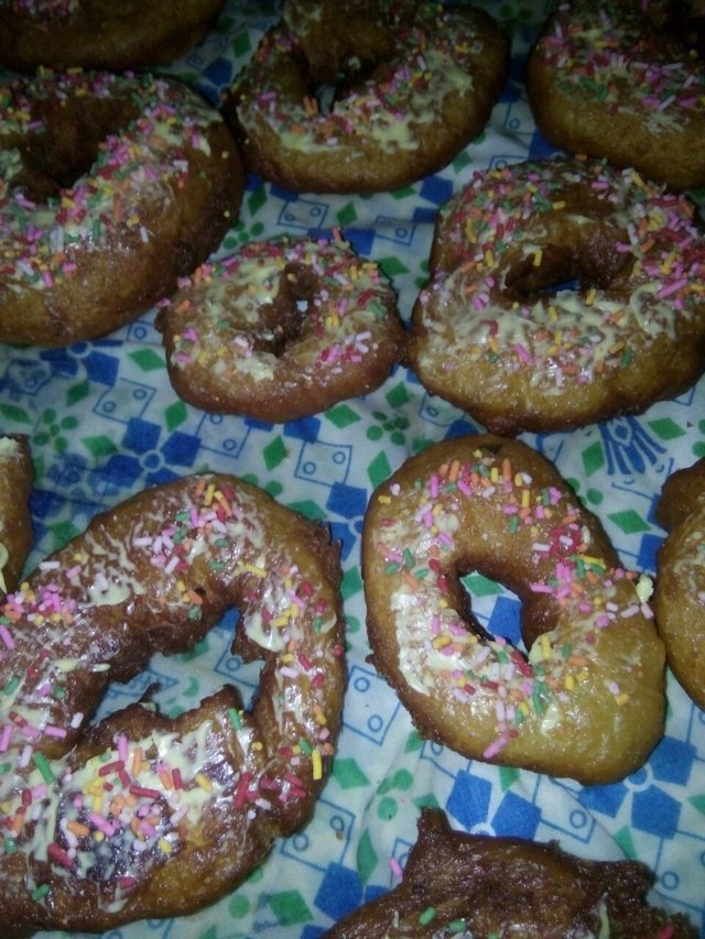 here is the procedure of making donut cake, good luck 😊 .. i am happy to share the recipe from us, thank you have read my bloq and hope you like it And if any likes its still follow me @omraju follo me and thanks for @steemit.