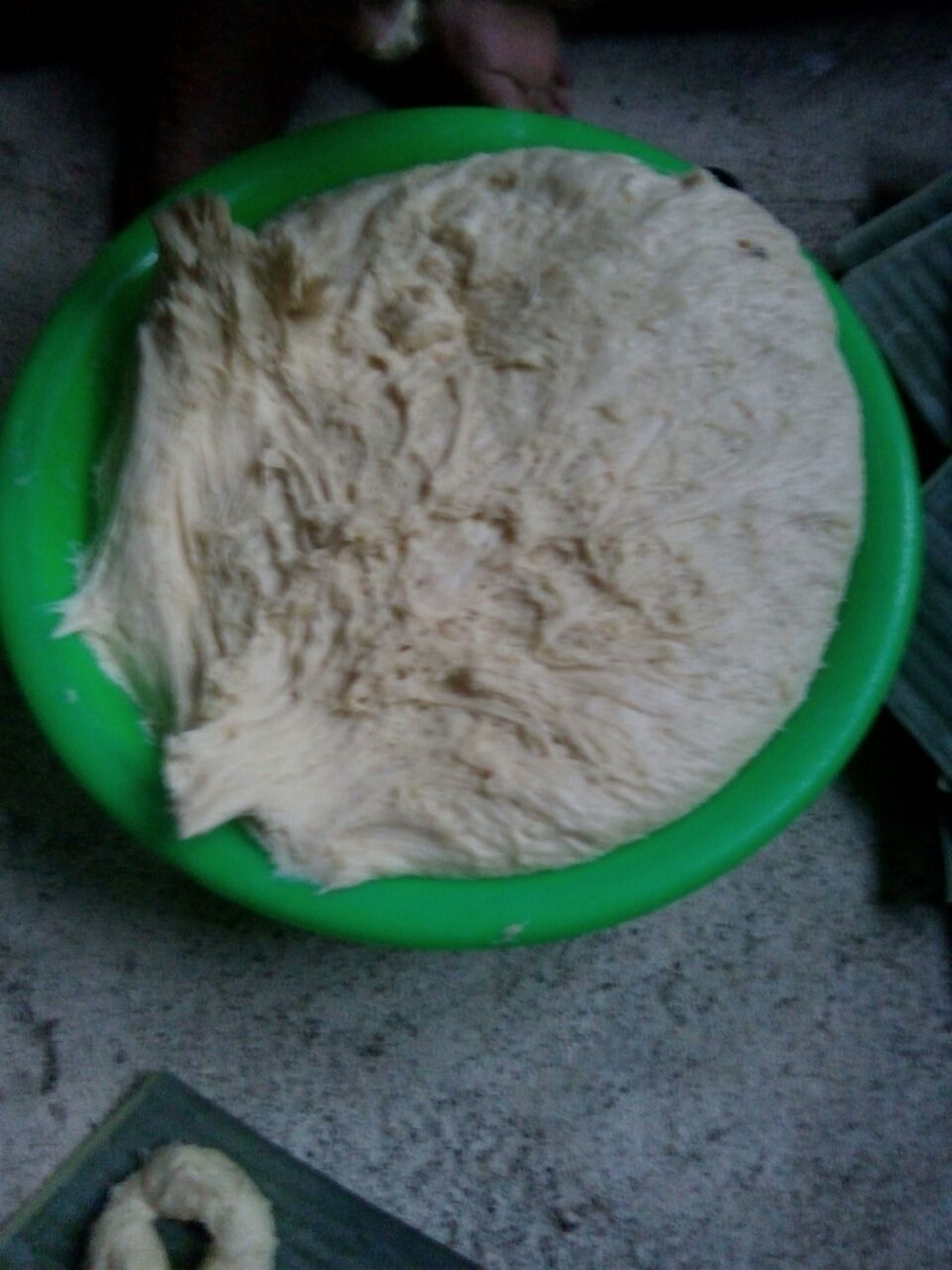 3.setelah dough in stir uniformly wait and save about 15 minutes until the dough expands.