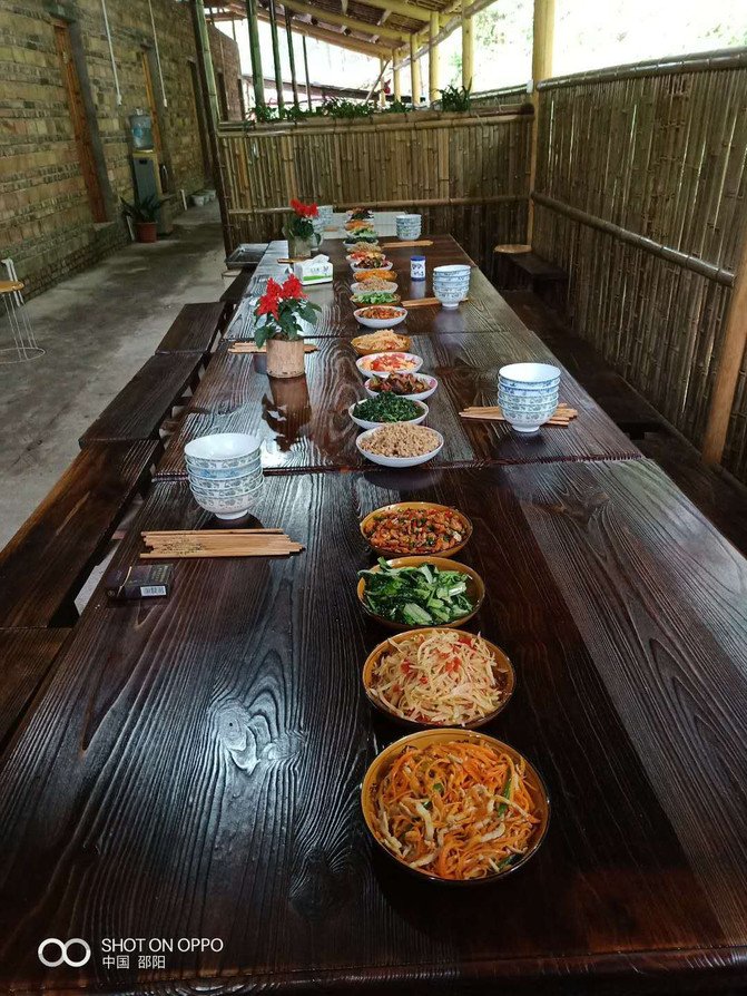 When I came back from the river, there was a long dragon feast in the garden. We went to the bamboo restaurant and ordered a few small dishes. We asked for a small pot of wine and several friends picked up. Dinner is a special dish in the garden - Xiaohe fish, Yaojia bacon, herbivorous duck, pesticide-free vegetables~ All the dishes are simple, just a simple farmhouse practice, no bells and whistles, everything is very simple. With rice wine brewed by the farmhouse, it is a special township with friends. Half of the rice was eaten, and a young lady from the park came over and sang a beautiful toast for us, adding a different flavor to our dinner. The dinner was closed, and the raging fire accompanied the singing in the park. A large group of people gathered in the campfire performance area of the park. Although it was a midsummer, there was no enthusiasm for this evening. Singing and dancing, playing with everyone, unloading the heavy burdens in my heart, it is rare to be happy.