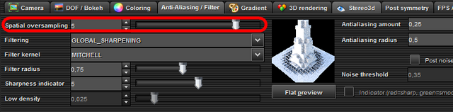 Here, both images are rendered with Quality=100; the left one has Oversampling=1 (8.2sec), while the right one has Oversampling=3 (29sec). To better see the difference, right-click on the image above and select "Open in new tab".