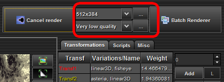 Rendering is the last step of creating a fractal. All the design and tweaking is over, and then you have to let the computer calculate all the formulas and depict them in pixels, forming an image. Rendering can take anywhere from just seconds to several hours, depending on the settings you choose. Two basic settings that affect the rendering time in JWildFire are Image Size and Quality.