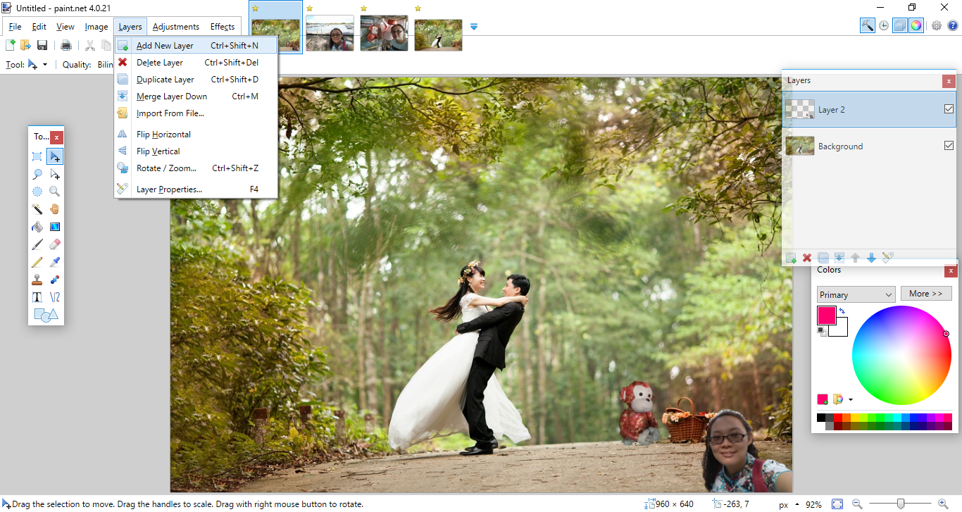 Then I selected the wedding couple as my background. Click on the "Layers" and select "Add New Layer".