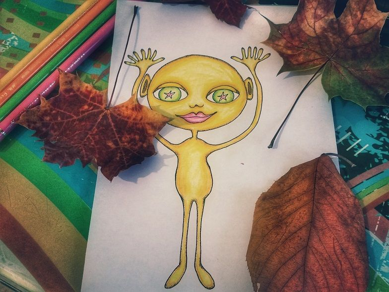 Karina set down her pen. She had finished another drawing, and sat staring at it, smiling quietly.
