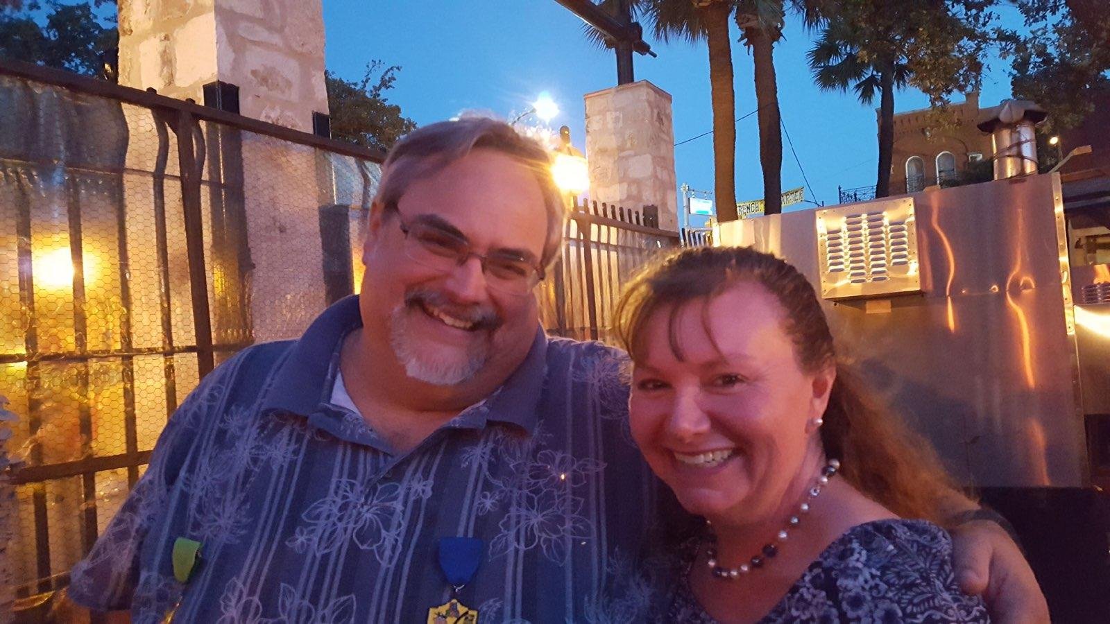 Well it's Fiesta time in San Antonio Texas and Debbie and I always like to volunteer for some of the booths. The event is called N.O.I.S.A., Night in Old San Antonio, and her coworkers are the chairpersons. On Tuesday we worked the Cascarone Booth, these are eggshells stuffed with confetti, that people break over their friends heads for good luck. Actually, you will find the confetti in your butt crack about three days after Fiesta, and I'm not sure where it was hiding all those days.