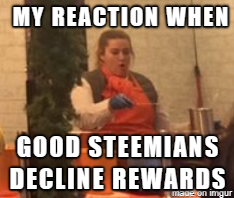 I guess that declining rewards isn't the way to go, and I'll just continue engaging and encouraging as my part in the big wheel.