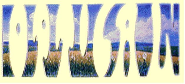 you may not see it at firts, but the white space read the word optical, the blue landscape reads the word illusion.