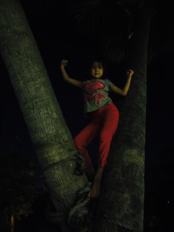 She is working her pose as she is quite proud of being to climb so competently . Its great that she is not scared but more importantly she is very conscious and responsible. She knows what she is capable of and what she is not. She knows to to sense if she is getting into the danger zone or not and she knows how to be careful.