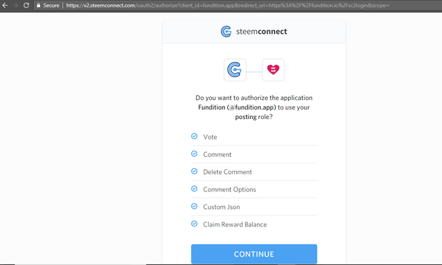 5. Login to Fundition as seen below through steemconnect