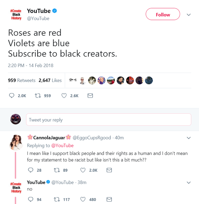 You'll never hear them say, "Subscribe to good creators, regardless of background"... They're always so agenda-driven, which is one thing, but you're right, the way they go about it is ridiculous!