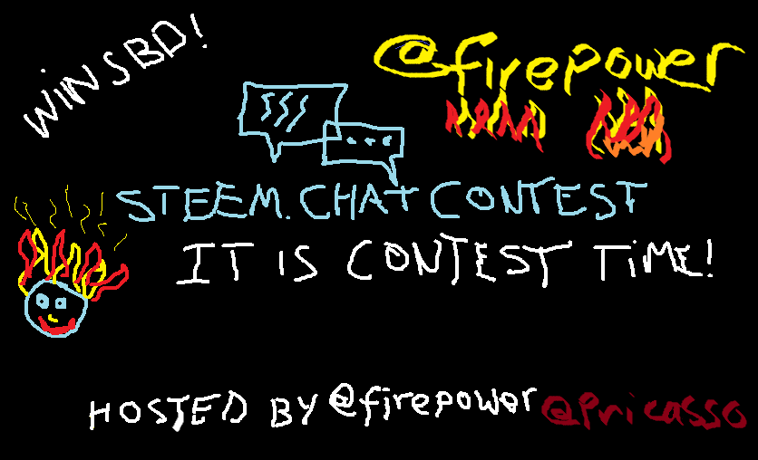 Earthlings my most wonderful earthlings. I am Pricasso most wonderful artist. What inspires you? What gives you life, what makes you happy, what makes you smile? Art gives me life, gives me joy happiness and smiles. Pricasso's main goal here is to make everyone laugh and smile. There is too much pain suffering and general ill humor on Earth. Pricasso plans to change that. Pricasso has a few but very special friends on here. One been @firepower. He has been having a rough time of late just come out of hospital and thankfully now home recovering. Pricasso wants to add colour and smiles and laughter here and I feel that I am slowly but surely getting there. Today's most magical Piece was a little different. Pricasso's ode today to @firepower was meant purely to bring a smile to the dial and a skip to the step because that is what @firepower does for others on a way larger scale than I, and I felt the need to return the favor. Firepower gave many steemians a most wonderful prize today myself included 4 magnificent SBD and I thought to highlite his contest in a plug as well as appreciation I would draw a most wonderful artwork in his honor and hoping to bring more steemians to his magnificent contests. See his latest contest here participate as well as give him some love.. https://steemit.com/steemchat/@firepower/steem-chat-contest-23 amazing stuff you have Pricasso's magical seal of approval.
