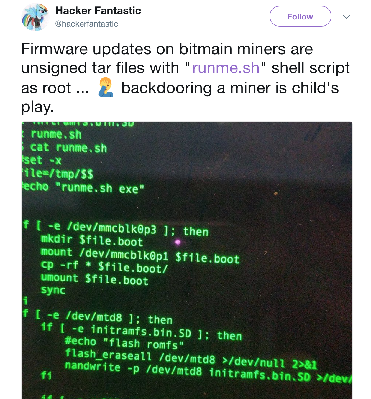 Looks like I have been one upped by Jihan and Bitmain! Maybe I should hire them to write shitty firmware for me?? He is literally backdooring miners in more ways than one!