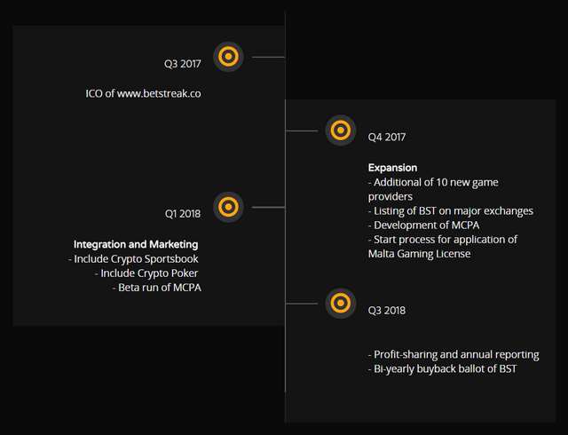 We will develop an online payment wallet system to enable players holding Top 10 crypto receipts based on market limits, so players can use crypto currency other than bitcoin to play in licensed online casinos. Unlike other ICOs, players can already play on us. the betstreak.co website, and we are trying to resolve the issue of accepting other crypto currencies by building online payment platforms for reception use and integration of the top 10 crypto drive.