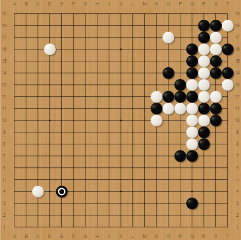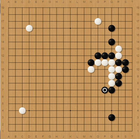 He didn’t miss that opportunity and tried to live with his other group but I managed to kill it. If you look at the previous picture, his two stones didn’t really have a lot of space, I would have been very surprise if he succeeded. After that sequence, he played a strange move, T18, I ignored it and played a big move elsewhere.