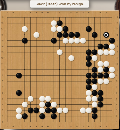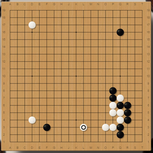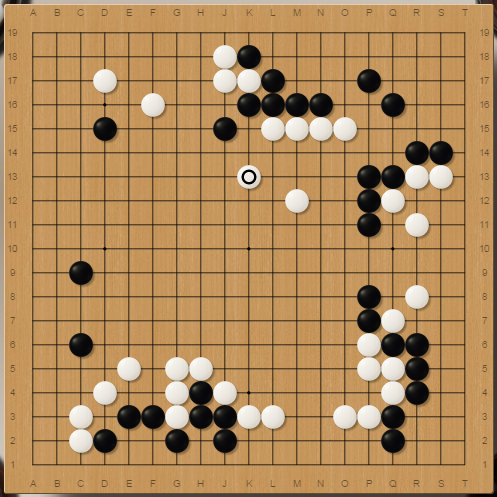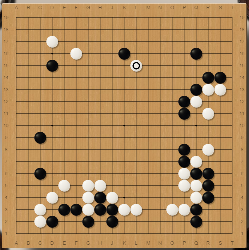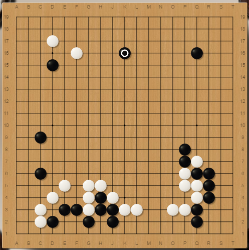 I managed to make it lives and the sequence ended with my big move on K16. After that, he attacked my upper left corner with R11 and started a fight but I was ok let him lives on the right to make a lot of point with my brand new wall.