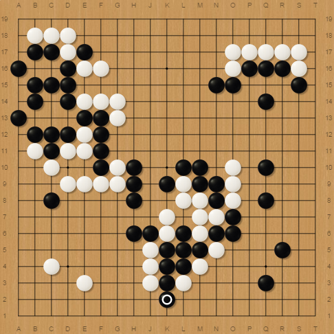 While he was taking some free moves to cut off my stone C8, I managed to play 2 big moves at K3 and Q10, those moves put me more ahead.