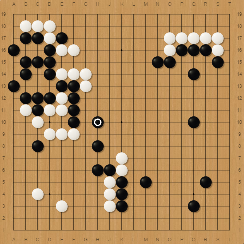 After some moves, he decided to cut me with his group near K6. I gain a lot of space with H10 as I give him the choice of either let me connect with my other group or gain a lot of liberties with my cut group. As you can guess, he chose to cut me and by so, keep the fight going.
