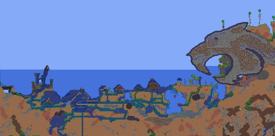 I'm quite happy with how some of the buildings and the map overall turned out. The map is populated with castles, towns, pirate ships, ruins, towers and even an underwater village! Here are some side cutaway shots for you to see: