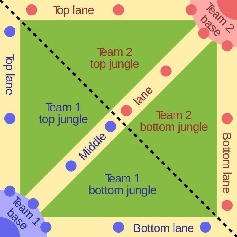 The two opposing teams fight to reach and destroy the enemy's base while defending their own base for control of a path, the three "lanes" known as "top", "middle" and "bottom", which connects the bases. There include 5 players in each team. Each player control their owned "hero".