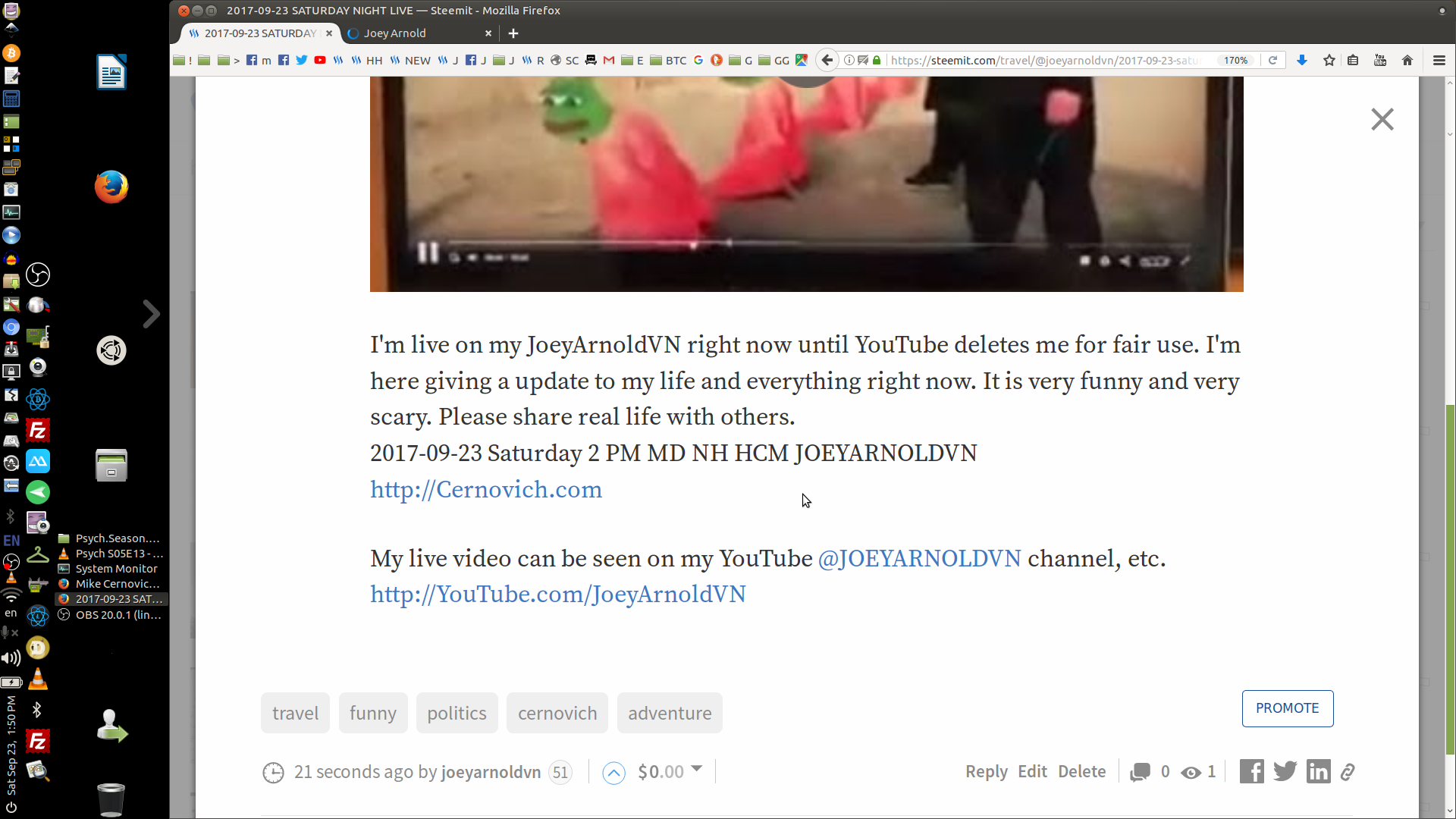 CBS SAID: "We submitted a claim to YouTube in reference to a video uploaded by you (youtube . com/ watch?v=bRlC9DZ6CGk) because it contained unauthorized use of content from the Event."