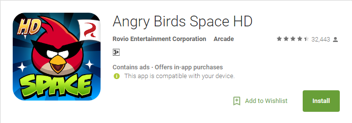 Uniquely, Angry Birds Space includes two icons that serve as links to two web pages ie one about Mars and Nasa and the other about Space and Nasa. Players can learn about the two topics on the sidelines of the game.