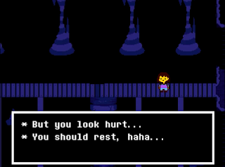 Dating Papyrus, giving Undyne water, dating Undyne and dating Alphys. The inclusion of such choices is, in my opinion, a positive - but I would've liked there to be more choices, or for the choices to have more options than a single date per character that decides whether or not you were a 'good enough' friend. However, credit where credit is due: Undertale's overworld is not a place without consequence, and the overworld and battle system aren't always completely disconnected.