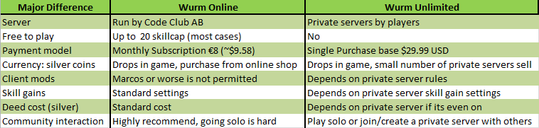Written from my own personal opinions and experience of more than 500 hours each played in Wurm Online and Wurm Unlimited.